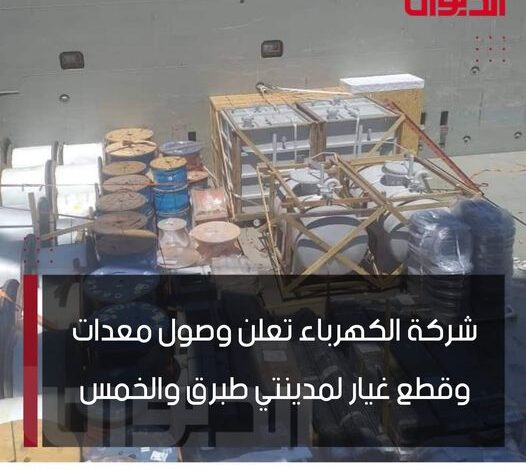 شركة الكهرباء تعلن وصول معدات وقطع غيار لمدينتي طبرق والخمس