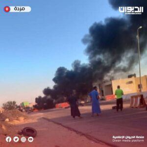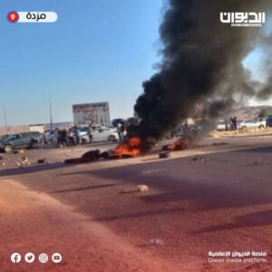 إقفال بوابة مزدة من قبل بعض الأهالي احتجاجاً على قرار وزير الداخلية بـ حكومة الوحدة الوطنية بضمّ مديريات الأمن بالجبـل الغربي.