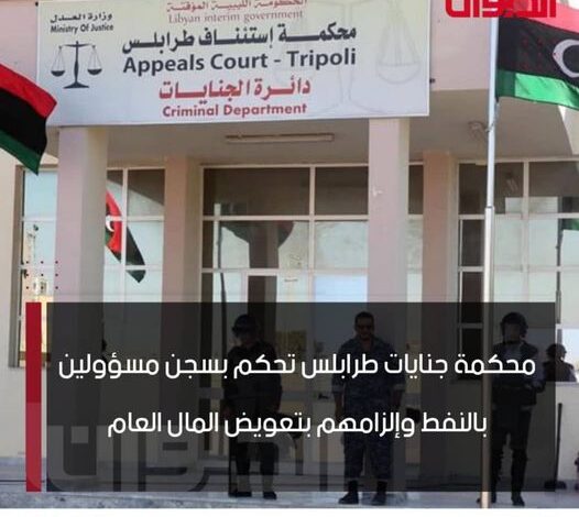 محكمة جنايات طرابلس تحكم بسجن مسؤولين بالنفط وإلزامهم بتعويض المال العام