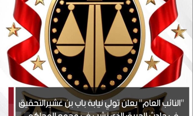 النائب العام يعلن تولي نيابة باب بن غشير التحقيق في حادث الحريق الذي نشب في مجمع المحاكم