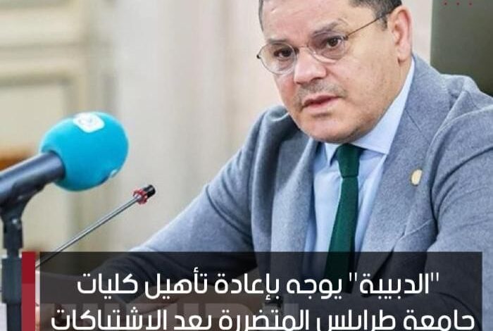 الدبيبة يوجه يإعادة تأهيل كليات جامعة طرابلس المتضررة بعد الاشتباكات
