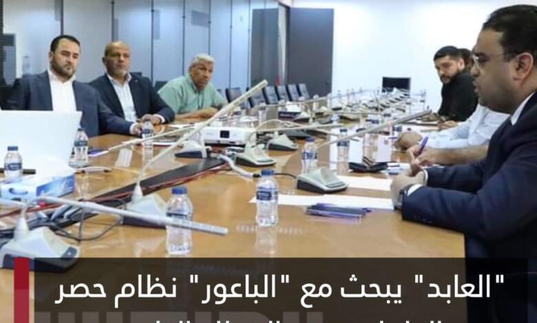 وزير العمل والتأهيل بـ حكومة الوحدة الوطنية علي العابد يبحث مع رئيس الهيئة العامة للمعلومات عبدالباسط الباعور وعدد من المسؤولين نظام حصر العاملين بالشركات في القطاع الخاص من أجل تكوين قاعدة بيانات بهم ومتابعة الازدواج الوظيفي في القطاع الخاص من قبل إدارة التفتيش العمالي بالإضافة إلى ملف التحول الرقمي وتطوير قواعد البيانات ومشروع تنسيب المحالين تصرف الخدمة فائض الملاك.