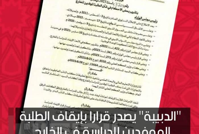 رئيس حكومة الوحدة الوطنية عبد الحميد الدبيبة يصدر قرارا بإيقاف 852 طالبًا من الطلبة الموفدين للدراسة بالخارج استنادًا إلى نتائج التحقيقات التي أجراها مكتب النائب العام.