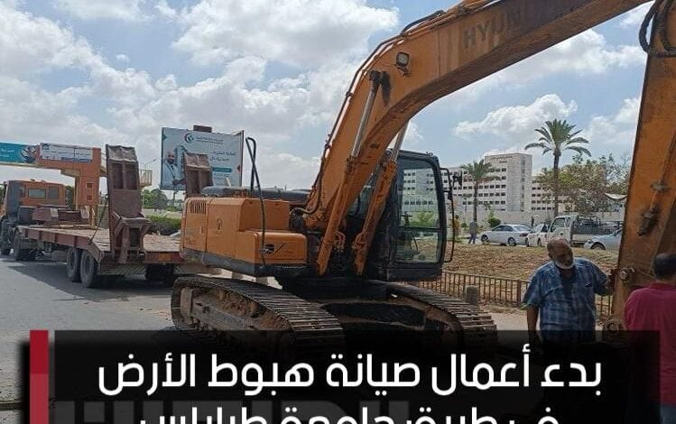 بدء اعمال صيانة هبوط الارض في طريق جامعة طرابلس
