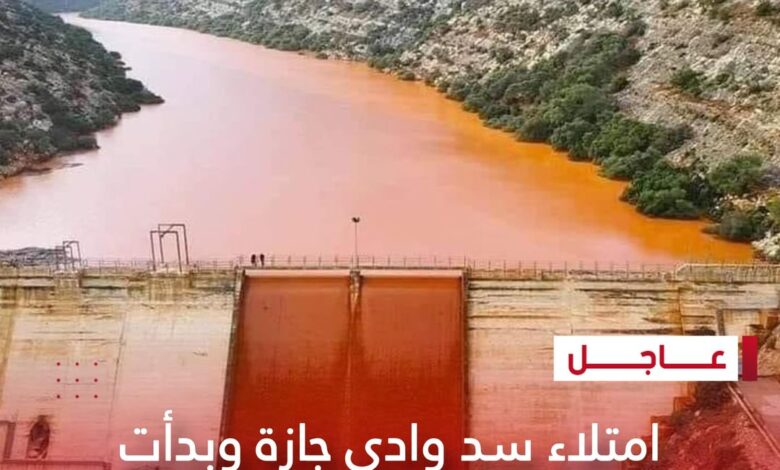 امتلاء سد وادي جازة وبدأت السيول تخرج من مسارها بمنطقة توكرة.