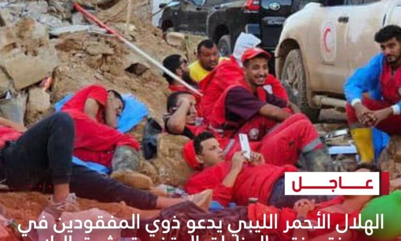 الهلال الأحمر الليبي يدعو ذوي المفقودين في مدينة درنة