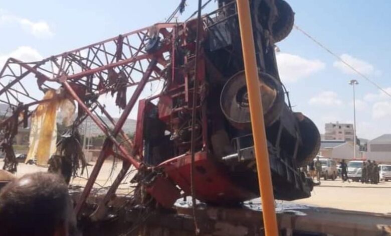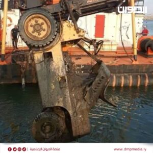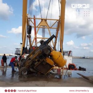 الشركة الليبية للموانئ تواصل أعمالها في انتشال الآليات الغارقة التي جرفتها السيول والفيضانات في حوض ميناء درنة