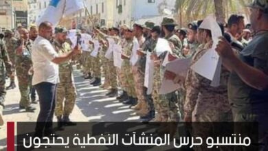 منتسو حرس المنشأت النفطية يحتجون امام مقر الوطنية للنفط بطرابلس