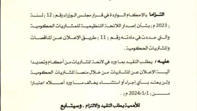 طرابلس 13 ديسمبر 2023 أصدر رئيس حكومة الوحدة الوطنية “عبد الحميد الدبيبة”، تعميمًا بضرورة تحديد آلية إعلان المشتريات من…